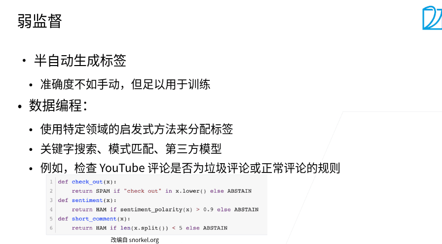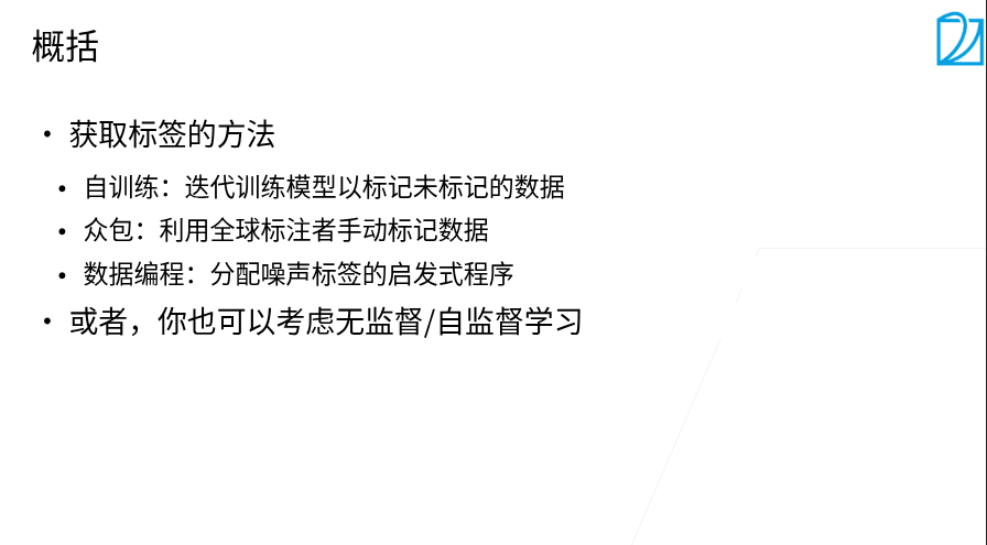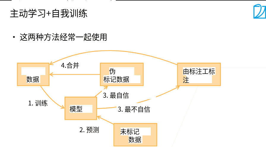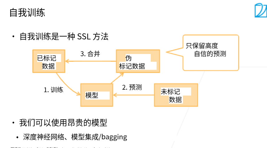 - 自训练 在已有标号的数据上训练一个模型,用于预测没有标注的数据,保留置信度高的数据,重复这个过程