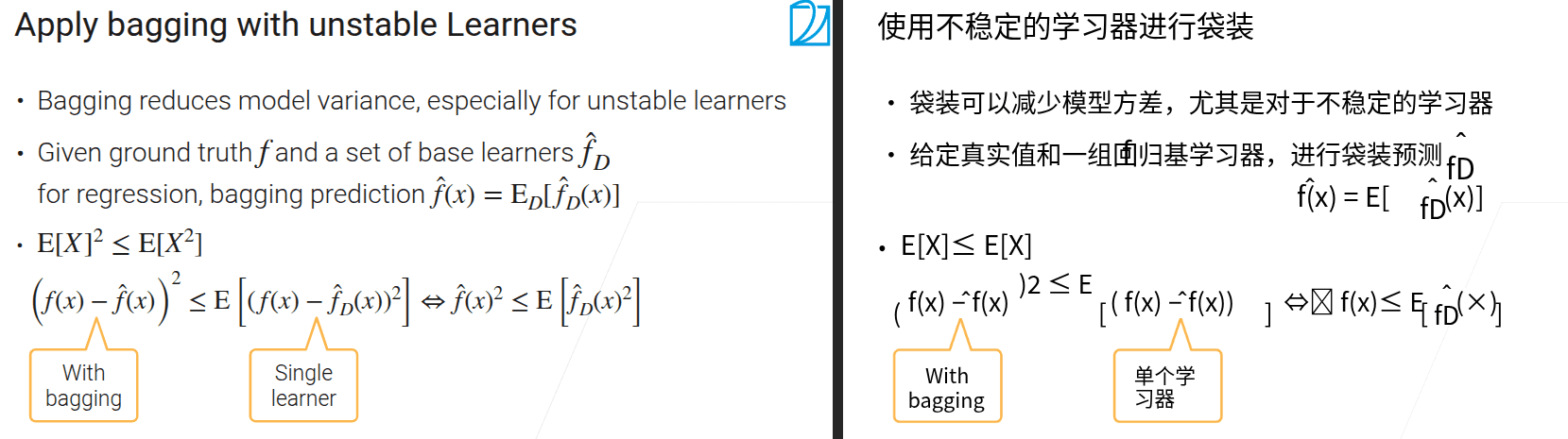 - 主要效果是能降低方差,特别是在模型不稳定的时候效果更加明显