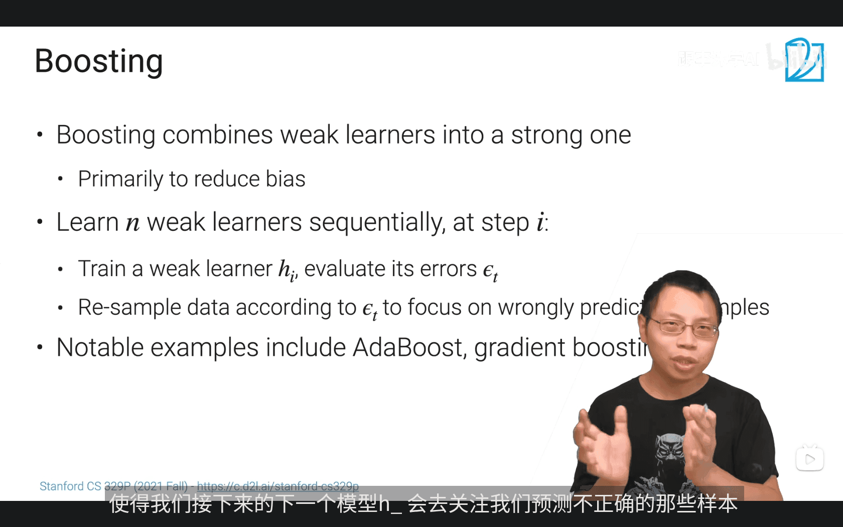 - boosting按顺序学习模型,bagging的话每个模型是独立的