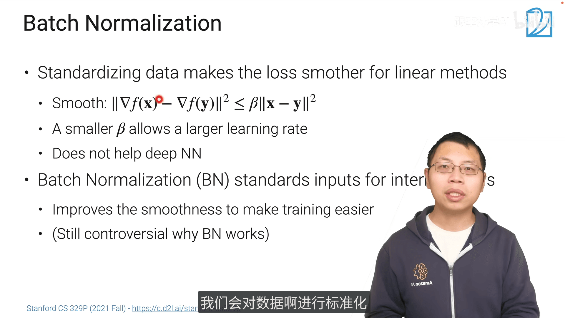 - 使训练更简单。损失函数更加平滑(导数值的变化更加平滑),可以用更大的学习率